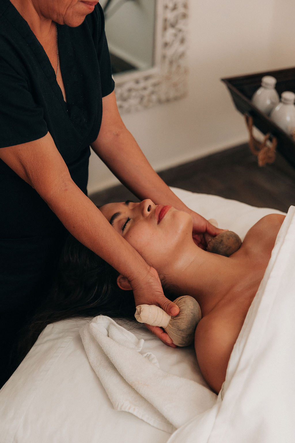 La experiencia se eleva con un masaje cráneo-facial, donde cada movimiento disuelve pensamientos, aligera la mente y abre espacio a la calma profunda.